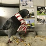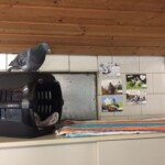Er sah es überhaupt nicht ein, warum er sich draußen seinen gefiederten Po abfrieren sollte, während es drinnen warm und trocken war. Mehrere Versuche ihn an ein Taubenleben zu gewöhnen schlugen fehl und irgendwann habe wir aufgegeben. Osswald hat gewonnen und wohnt im Nagerhaus in einer muckeligen Transportbox. Inzwischen hat er sich auch schon ganz gut eingerichtet und die Kontrolle über Personal und Besucher übernommen.
