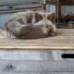 Letzte Woche bekamen wir eine Anfrage von einer Firma in Weidenau. Seit einigen Tagen hatte sich in der Halle ein Fuchs häuslich niedergelassen. Das Tier sei am Bein verletzt. Ein hinzugezogener Jäger konnte in dem Fall nicht helfen: es handelte sich nämlich nicht um einen gewöhnlichen Rotfuchs aus dem Wald sondern um einen sogenannten Platinfuchs, also kein einheimisches Wildtier sondern ein durch den Menschen gezüchtetes Tier.
