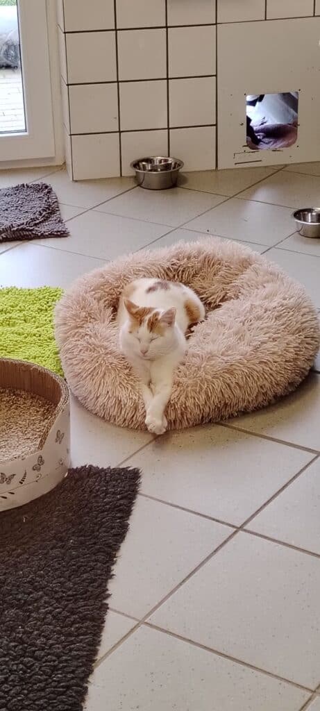 Nach viel hin und her, einer OP, bei dem er einen externen Fixateur bekam, und etlichen Wochen in einer Box, da er sich nicht viel bewegen durfte, konnte er vor kurzem endlich ins Katzenhaus ziehen und damit beginnen, eine Familie zu suchen, die ihn wirklich liebt! Der Fixateur wurde entfernt, im Knochen verbleibt aber noch ein Marknagel. Solange dieser ihm keine Probleme macht, kann er theoretisch auch bis zum Ende seines Lebens dort verbleiben. Sollte er irgendwann Probleme machen, müsste er noch entfernt werden.