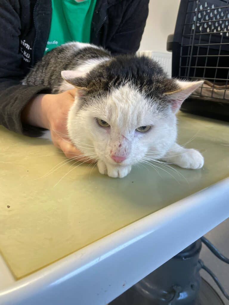 Tommy läuft seit den Sommer immer mal wieder ums Haus seiner findet herum. Besitzer konnten nicht aufgefunden werden. Nun haben sie ihn aufgrund der Temperaturen gebracht. Er ist unkastriert und nicht gekennzeichnet.